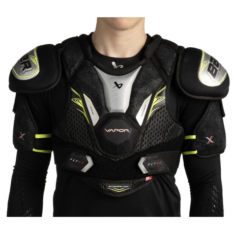 The Bauer Vapor FLY40 Shoulder Pads are designed for performance-level players who want lightweight protection with a streamlined, athletic fit. Built within the Vapor family, these pads feature a tapered profile that stays close to the body, allowing for excellent mobility without sacrificing coverage.